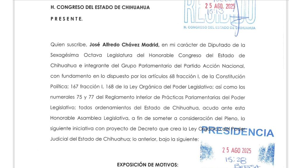 Chihuahua, Chih.- El coordinador del PAN en el Congreso local, Alfredo Chávez Madrid, presentó una iniciativa para expedir la nueva ley orgánica del Poder Judicial.