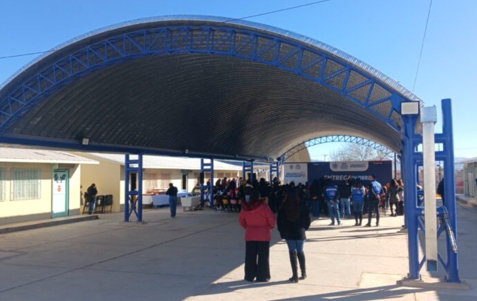 Chihuahua, Chih.- El alcalde, Marco Bonilla realizó la entrega de un domo en la primaria “Sor Juana Inés de la Cruz”, obra que contó con una inversión de más de 4 millones de pesos.