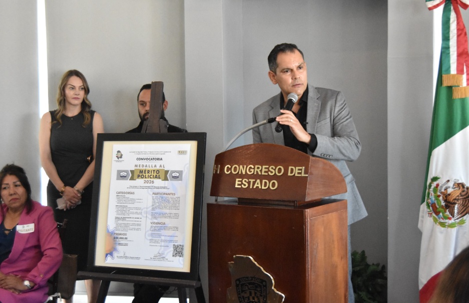 La Comisión de Seguridad Pública y Protección Civil del Congreso del Estado de Chihuahua llevó a cabo el lanzamiento de la convocatoria para la Medalla al Mérito Policial 2026, con el objetivo de reconocer a las y los integrantes de las instituciones de seguridad pública que se distingan por su valor, compromiso y contribución a la sociedad.