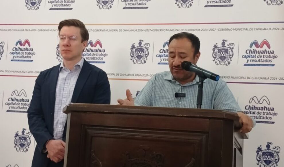 Chihuahua, Chih.- El director de Obras Públicas Municipales, Carlos Alberto Rivas Martínez, en compañía del secretario del Ayuntamiento, Roberto Fuentes Rascón informó que los trabajos de construcción del puente sobre la carretera a ciudad Aldama fueron suspendidos momentáneamente esta lunes tras una manifestación de ejidatarios de la zona.