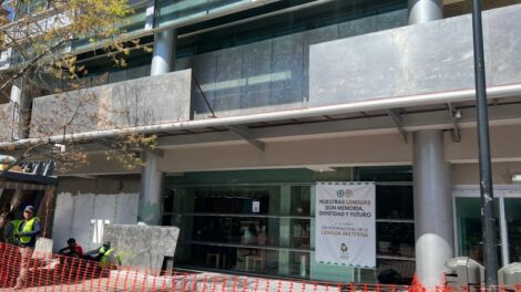 Chihuahua, Chih.- Personal del Congreso del Estado, comenzó los trabajos de protección del edificio legislativo, ante la marcha de mujeres en el...
