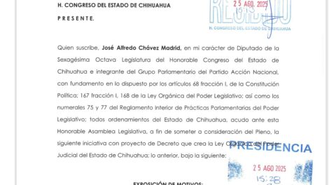Chihuahua, Chih.- El coordinador del PAN en el Congreso local, Alfredo Chávez Madrid, presentó una iniciativa para expedir la nueva ley orgánica...